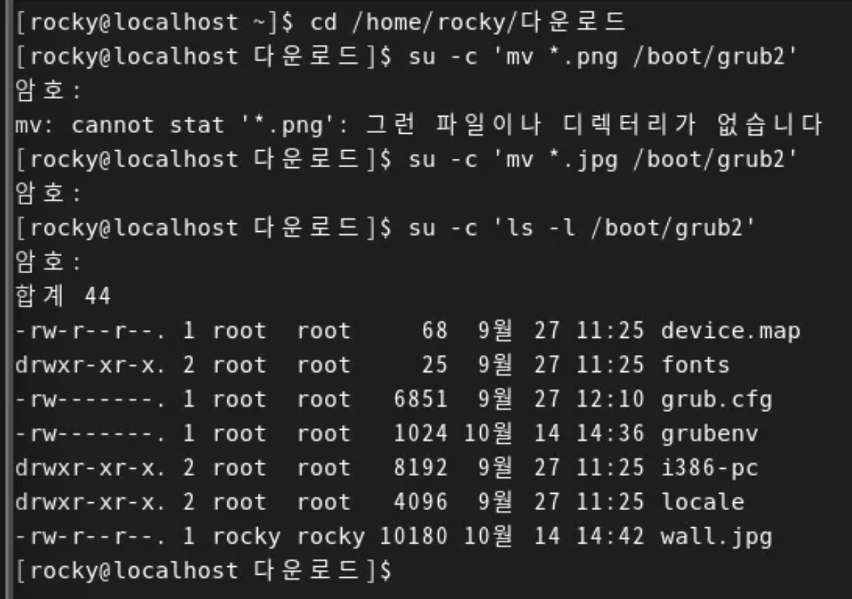 바탕화면으로 쓸 파일을 /boot/grub2로 옮깁니다. (root 권한 필수)