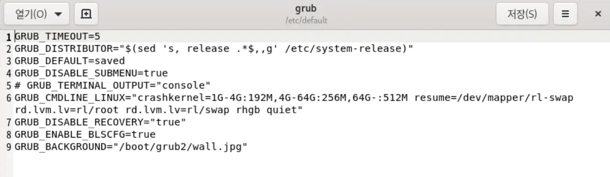 그리고 grub 파일의 최하단에