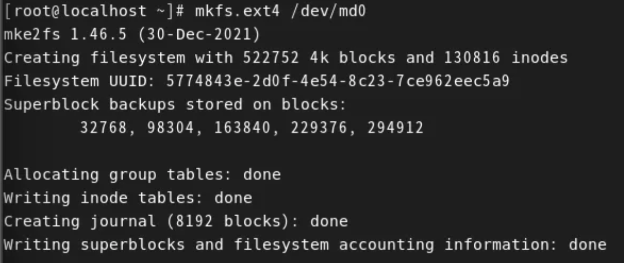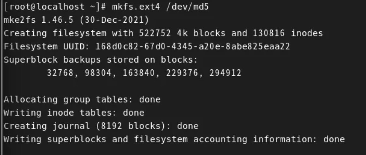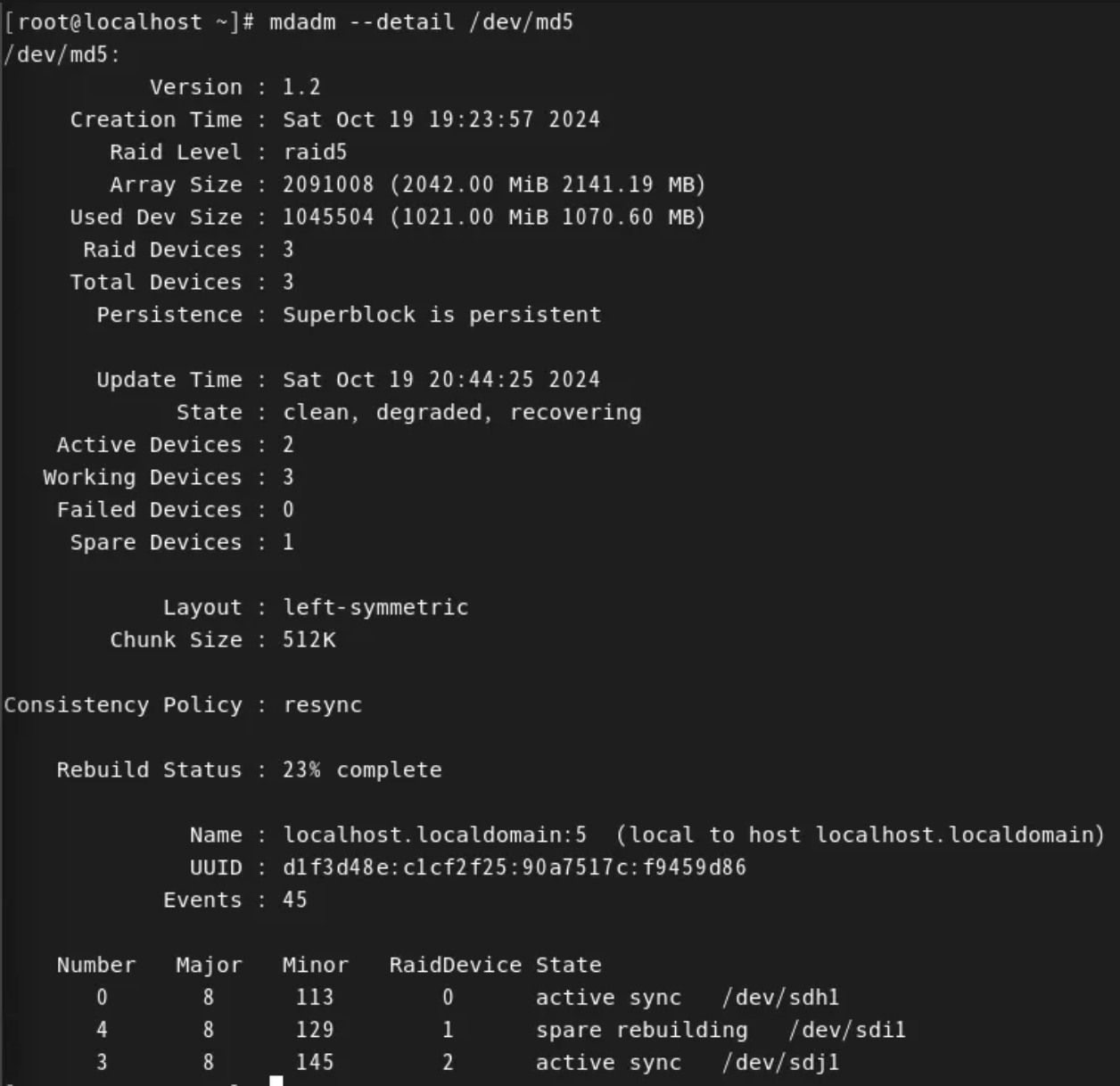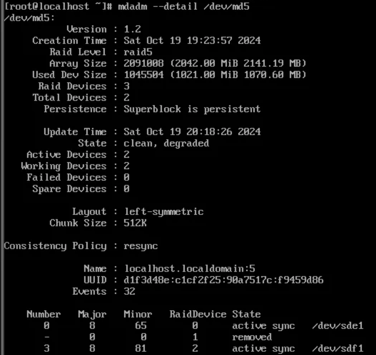 ARRAY /dev/md5 metadata=1.2 name=localhost.localdomain:5 UUID=d1f3d48e:c1cf2f25:90a7517c:f9459d86