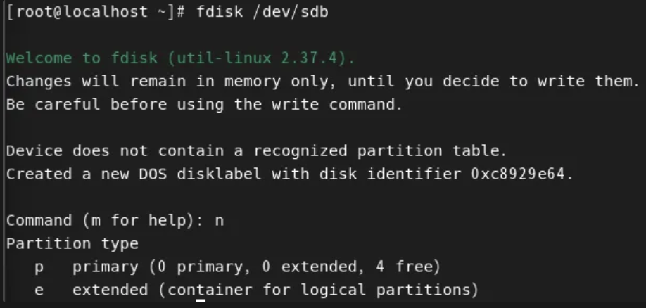 처음에 파티션을 나눌 때는 n을 입력합니다.