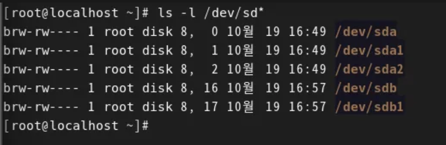 sdb가 생성됐다는 것은 두 번째 하드디스크가 정상적으로 추가됐다는 뜻입니다.