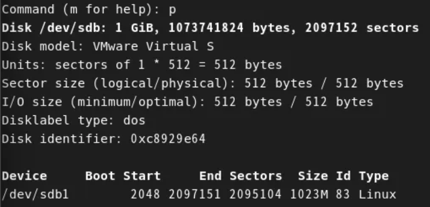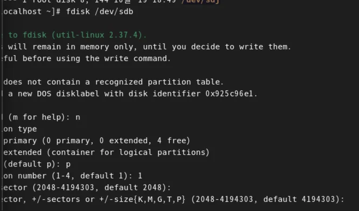 파티셔닝이 끝나면, sdb하드디스크의 경우 뒤에 숫자가 붙어서 sdb1이 생성됩니다.
