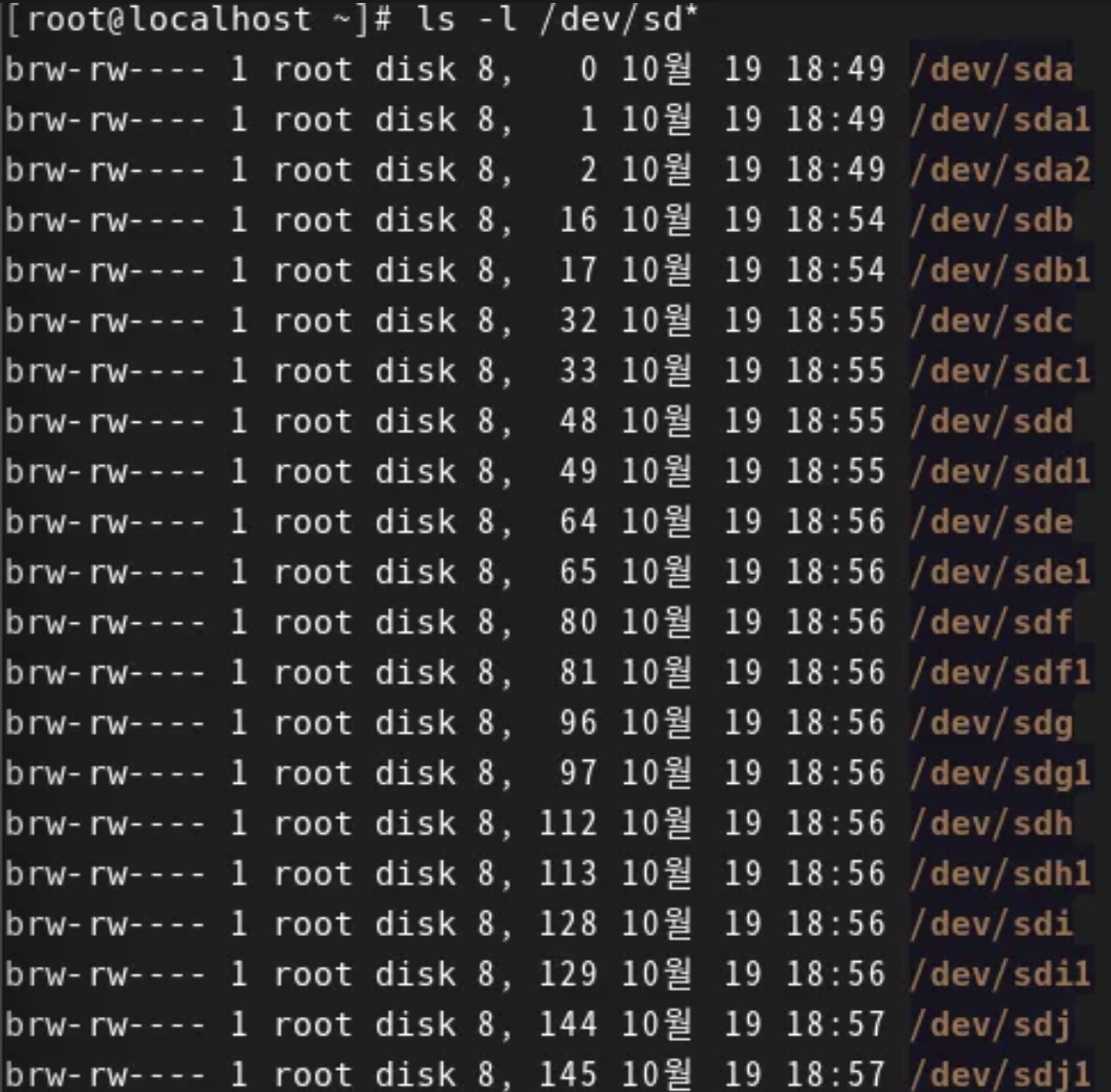 위 과정을 sdb부터 sdj까지 반복진행합니다.
