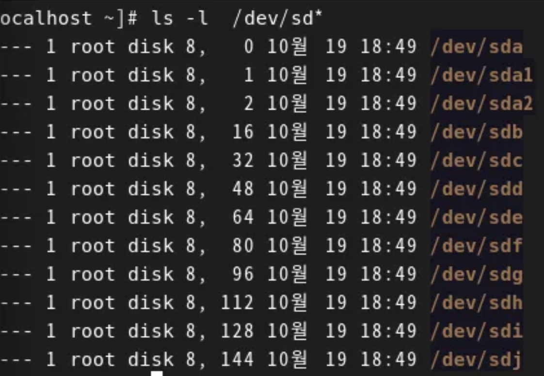 sda부터 sdz까지 하드디스크가 추가될 때마다 이름이 지정됩니다.