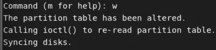 이때 w를 누르면, 파티션이 나눠지고 완료됩니다.