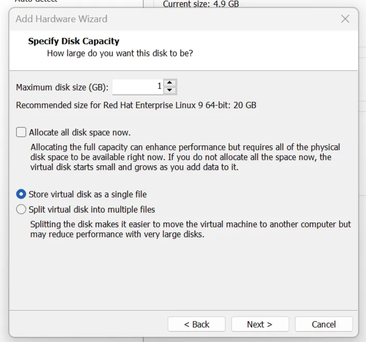 사진처럼 1gb, 'Store virtual disk as a single file'로 지정합니다.