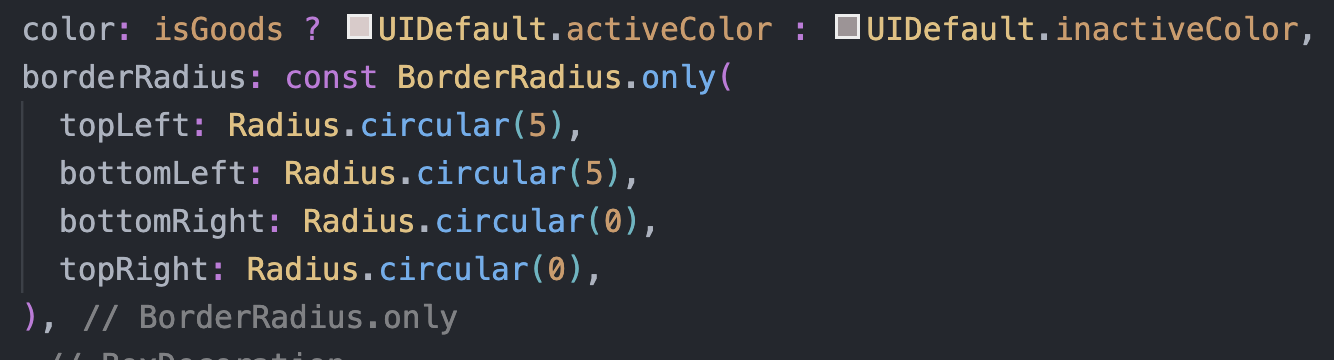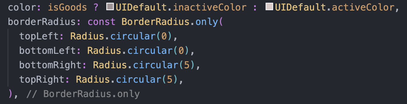 borderRadius 속성도 각 버튼의 위치에 따라 다르게 적용한 모습입니다.