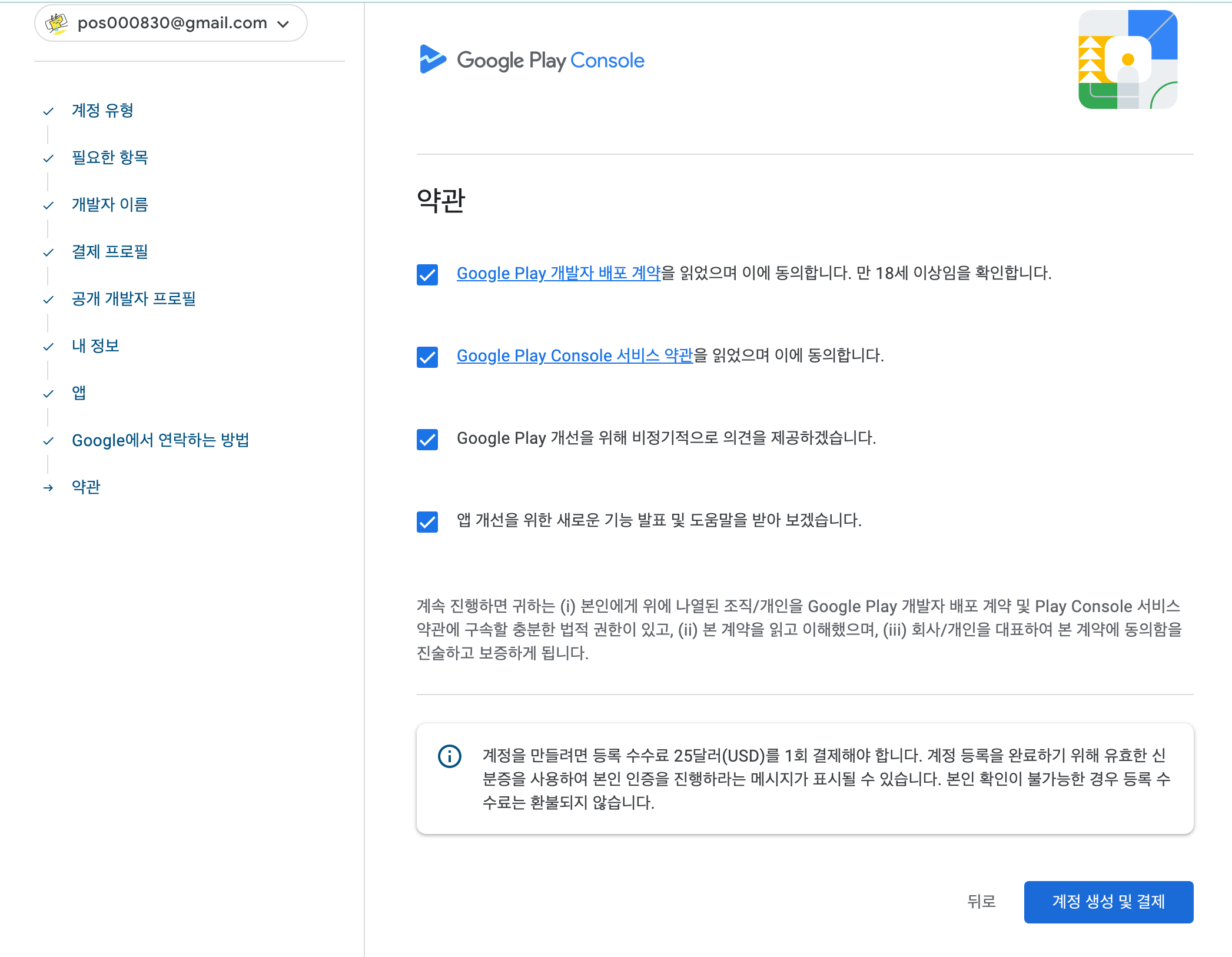위 링크를 타고 들어가서, Play 개발자 계정을 생성해야 합니다.