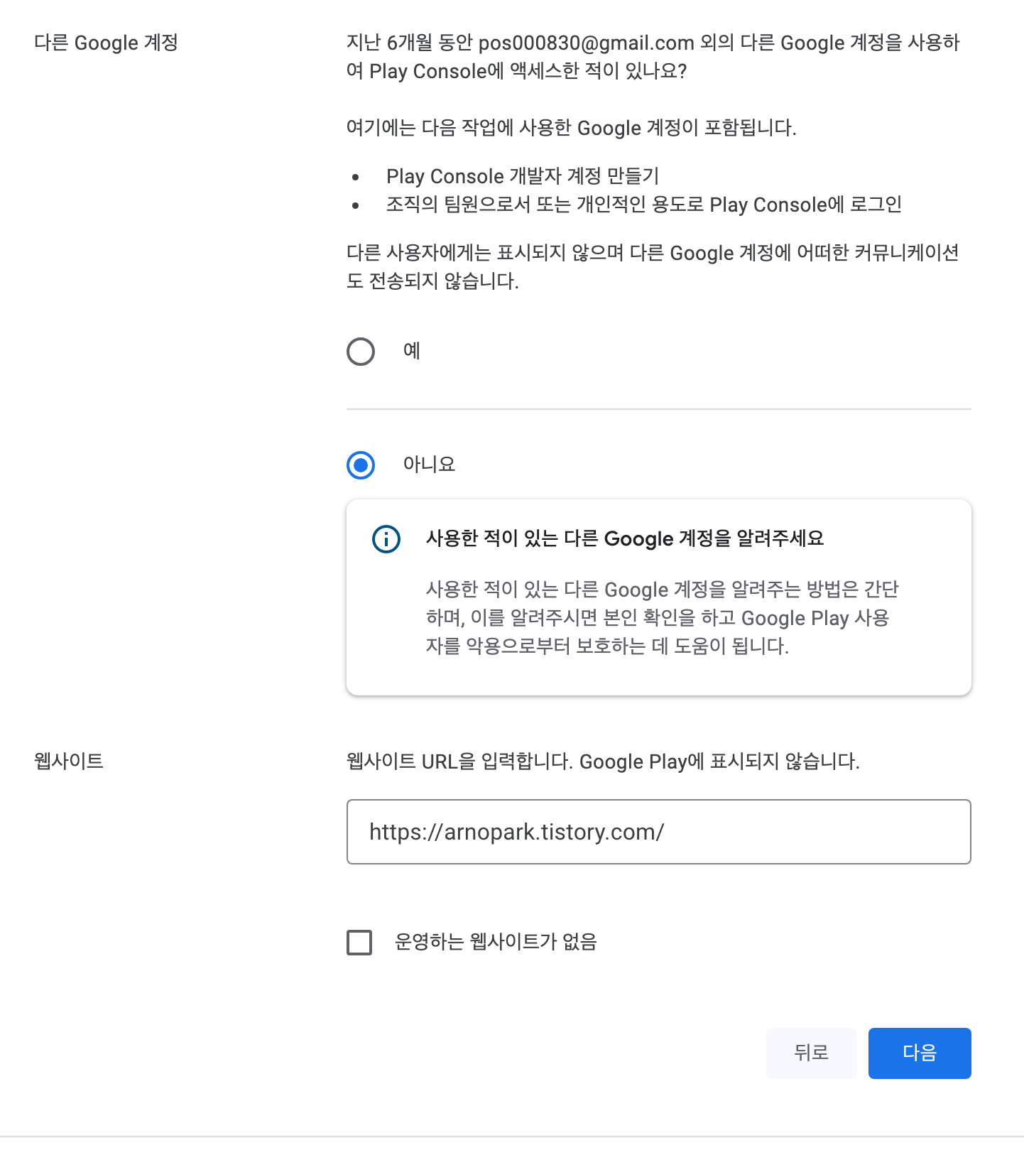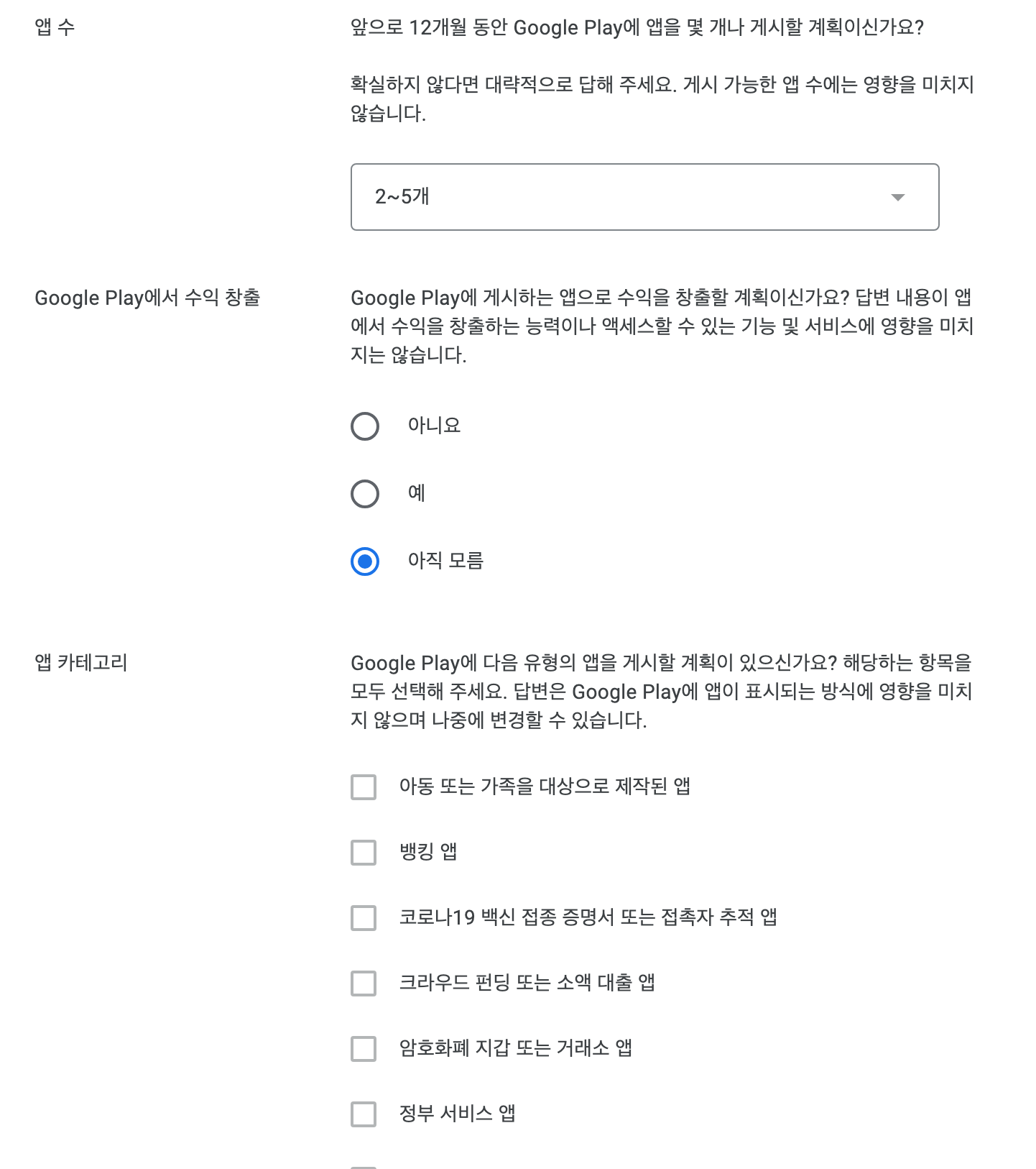 Play 개발자 계정을 어떻게 사용할지에 대한 질문들도 나옵니다.