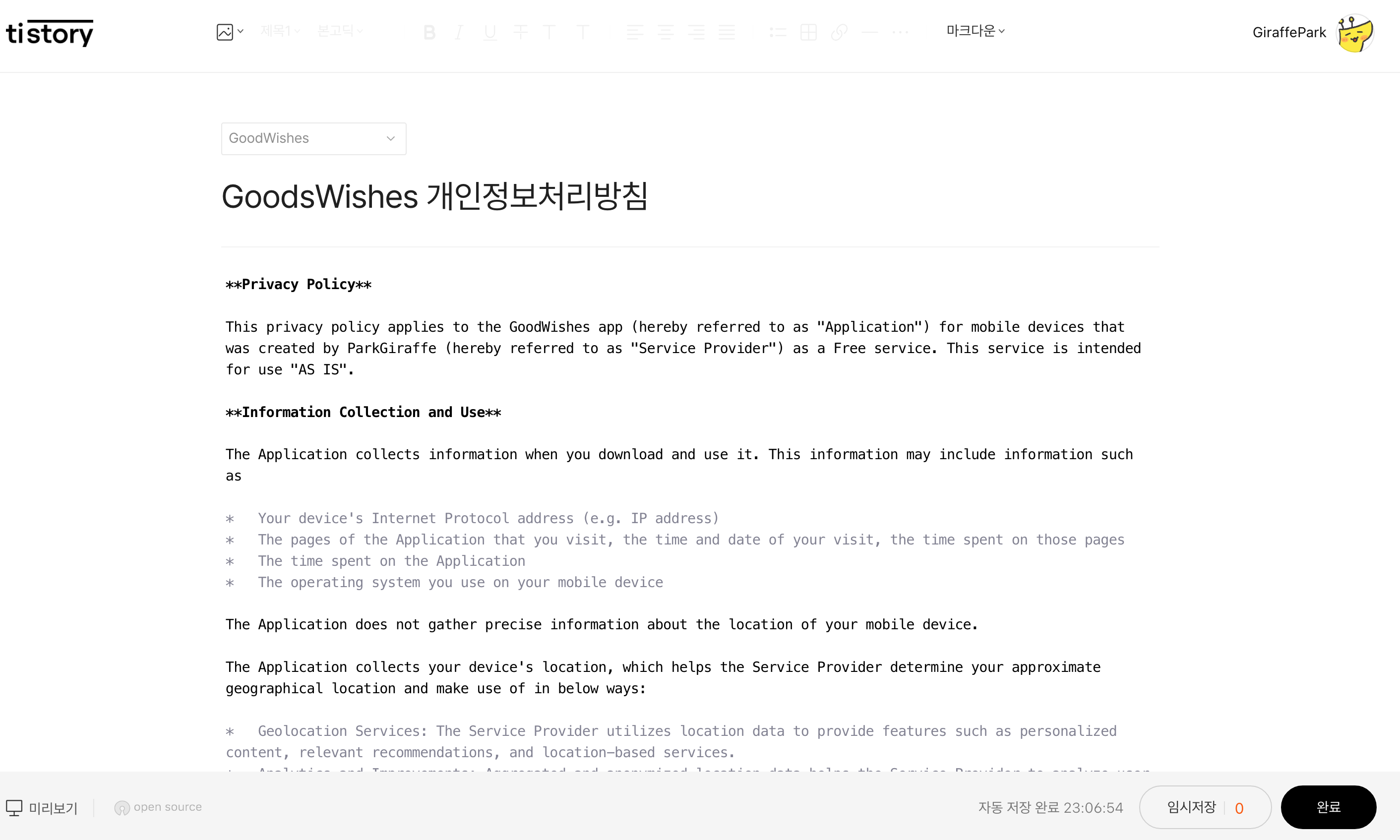 따로 개인정보처리방침을 올려 둘 곳이 없다면, 개인블로그를 활용해도 됩니다.