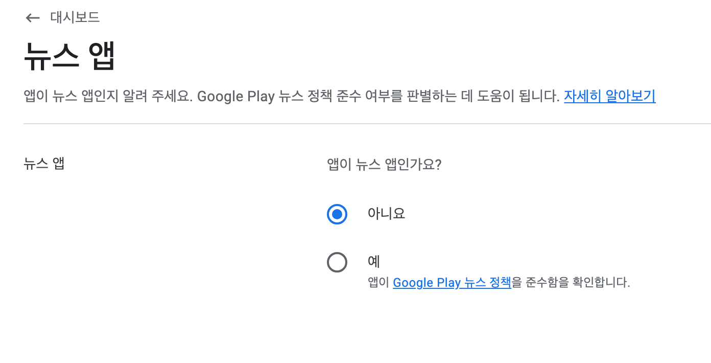 본 앱이 뉴스 앱인지를 물어봅니다.
