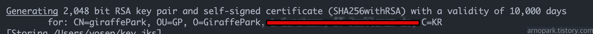 위 코드를 입력하면, 키스토어를 제작하기 위한 과정을 밟을 수 있습니다.