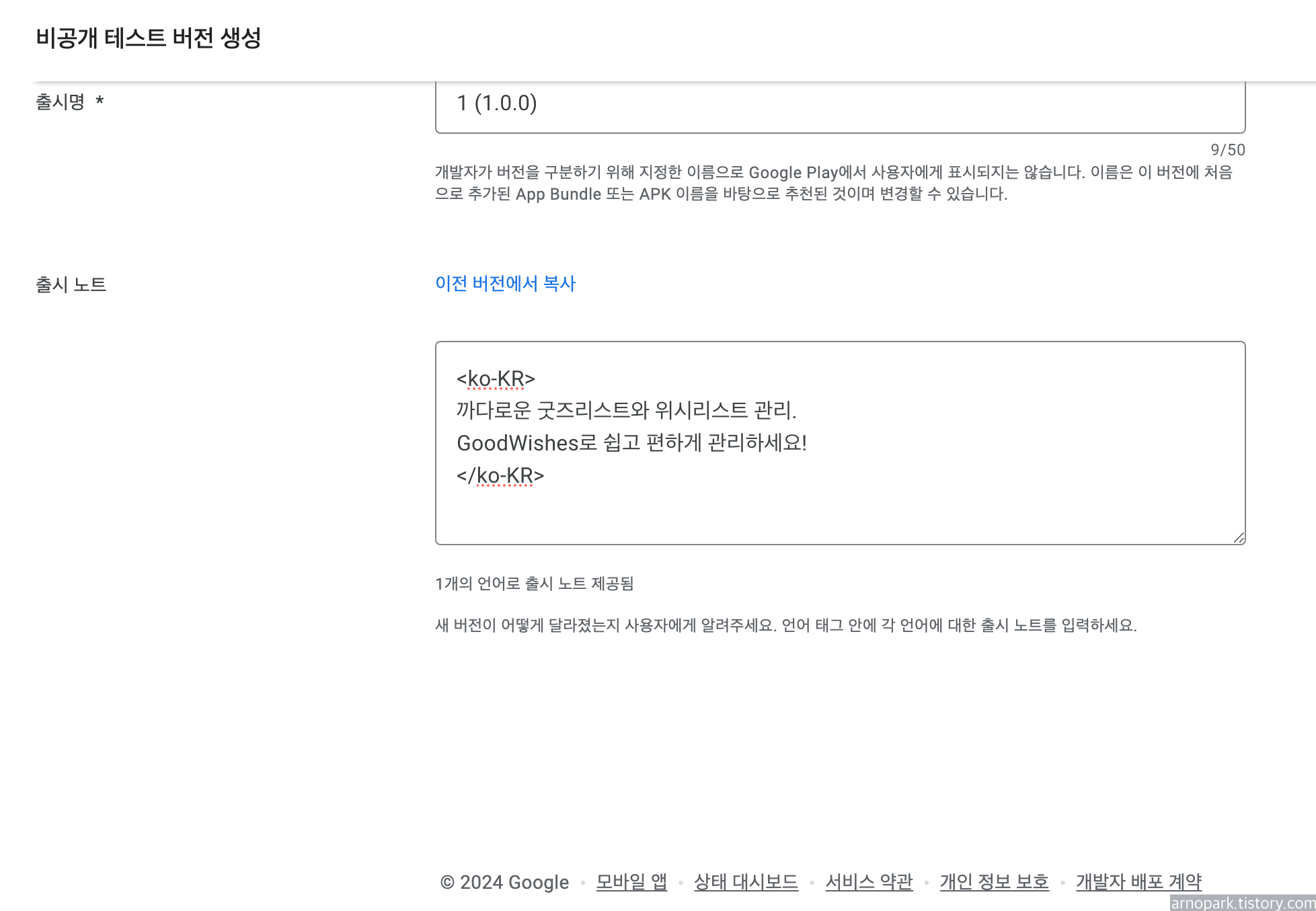 | [굿위시 제작기] 17. 구글 플레이스토어 출시과정 - 스토어 기본 정보 등록 (0) | 2024.11.15 |