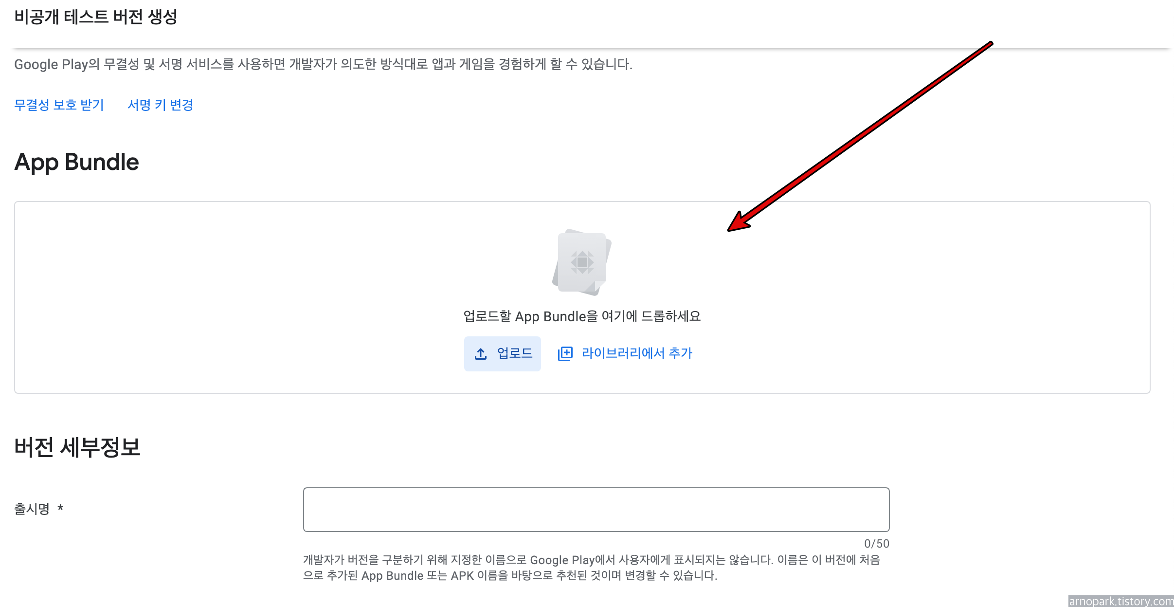 알파 테스트 버전을 생성한 후, 앱 번들파일(aab)을 제출해야합니다.