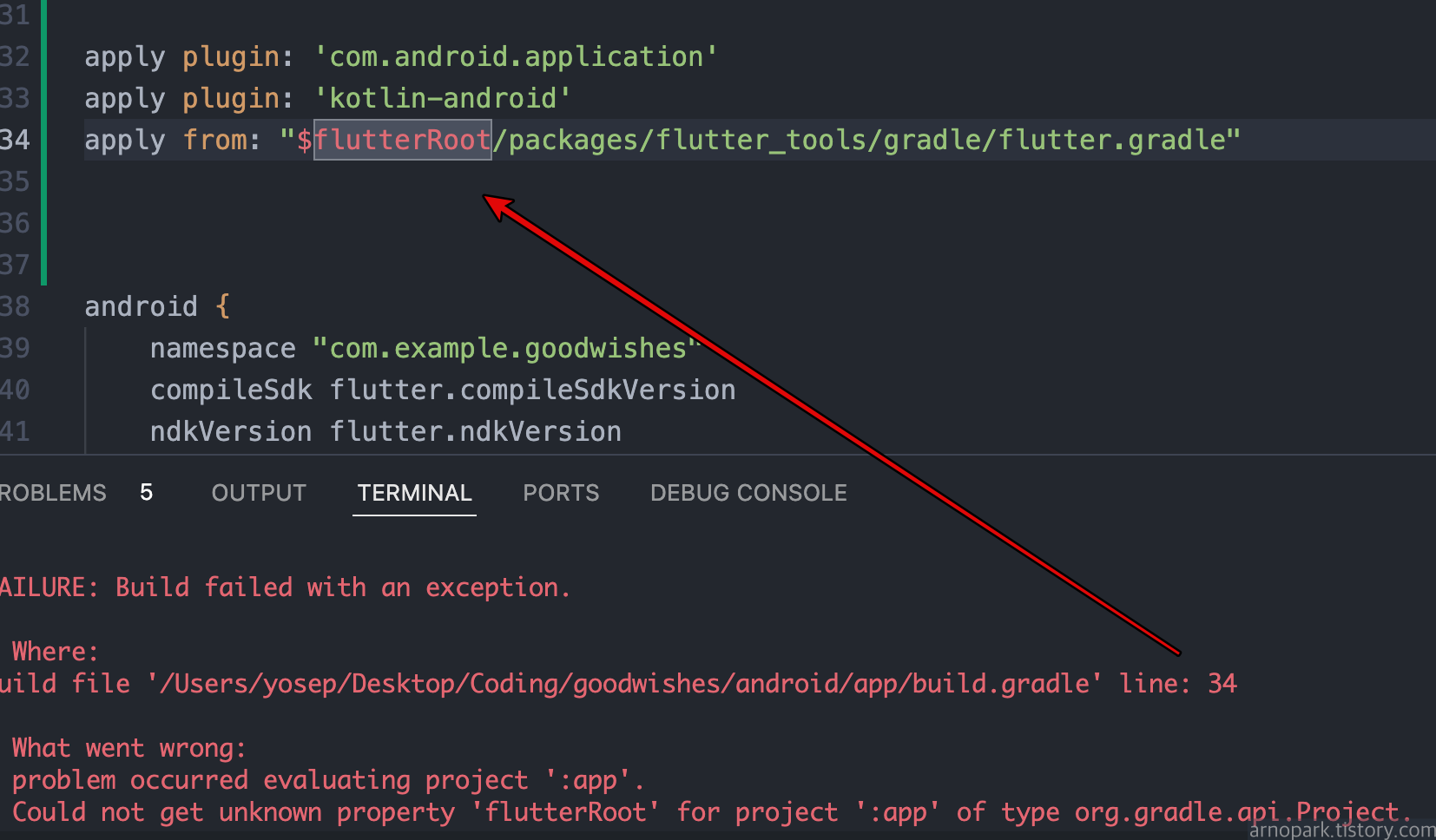 오류문구가 뜨는데, 'flutterRoot'가 무엇인지 모르겠다는 이유로 뜹니다.