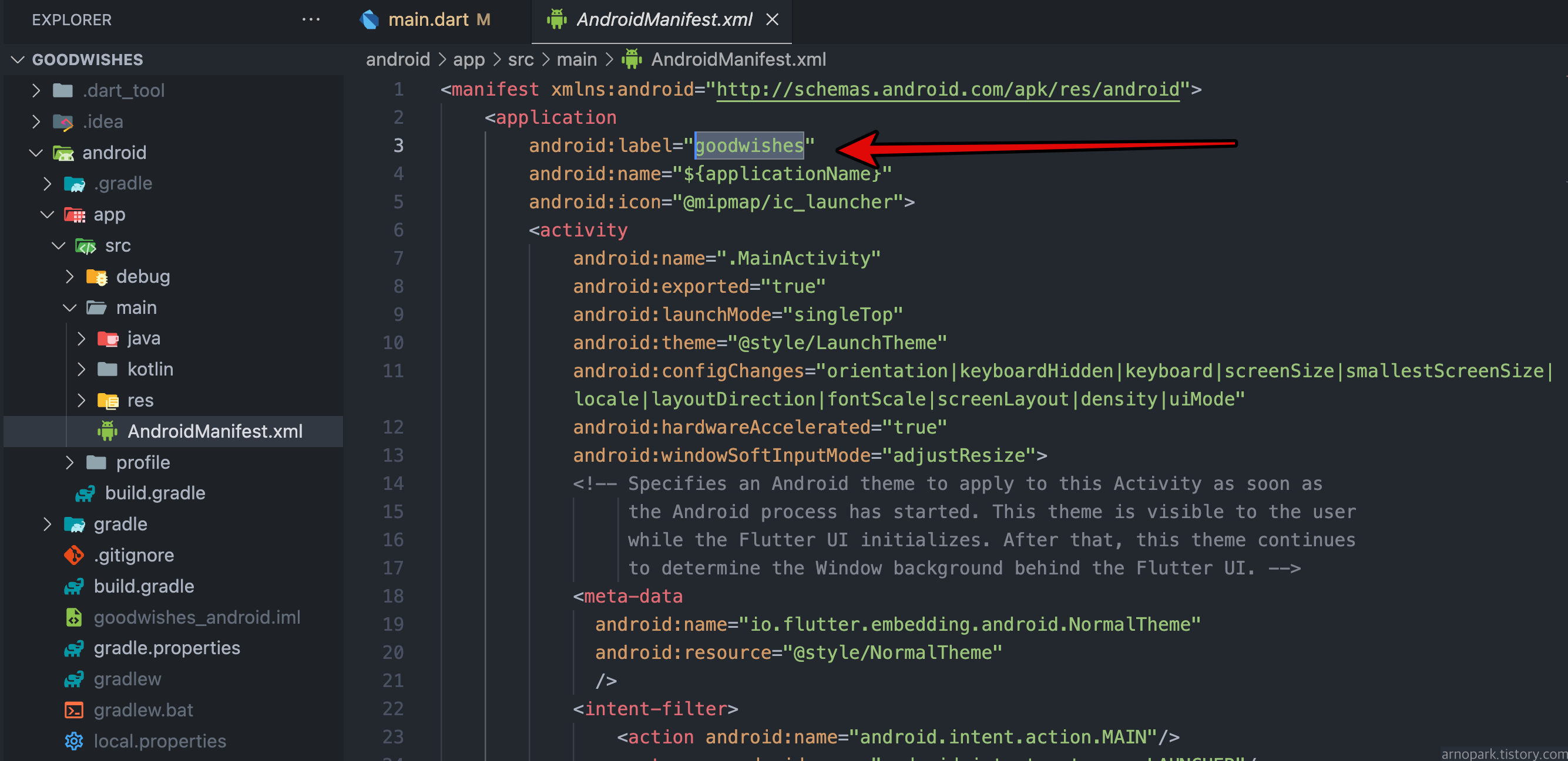 위 코드를 입력해서 flutterRoot를 지정합니다.