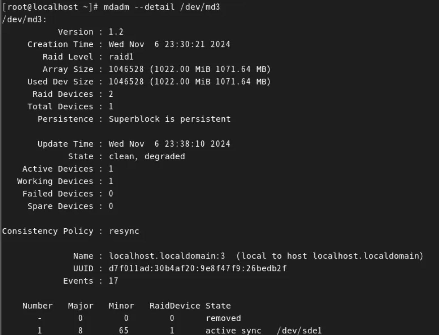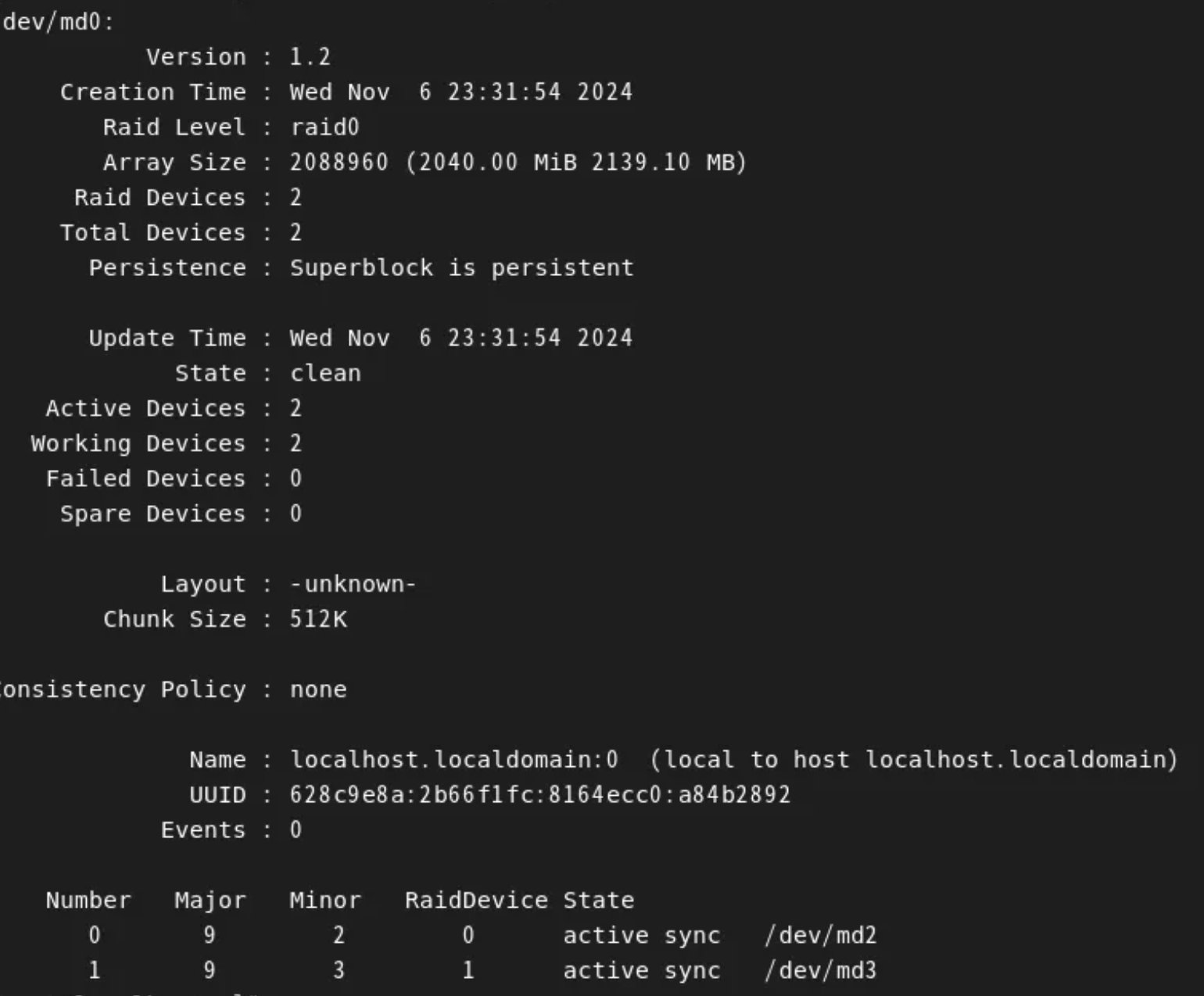 RAID 1+0은 RAID1 두 개를 RAID0으로 묶은 것이기 때문에, md2와 md3가 잘 작동하면 문제가 없습니다.