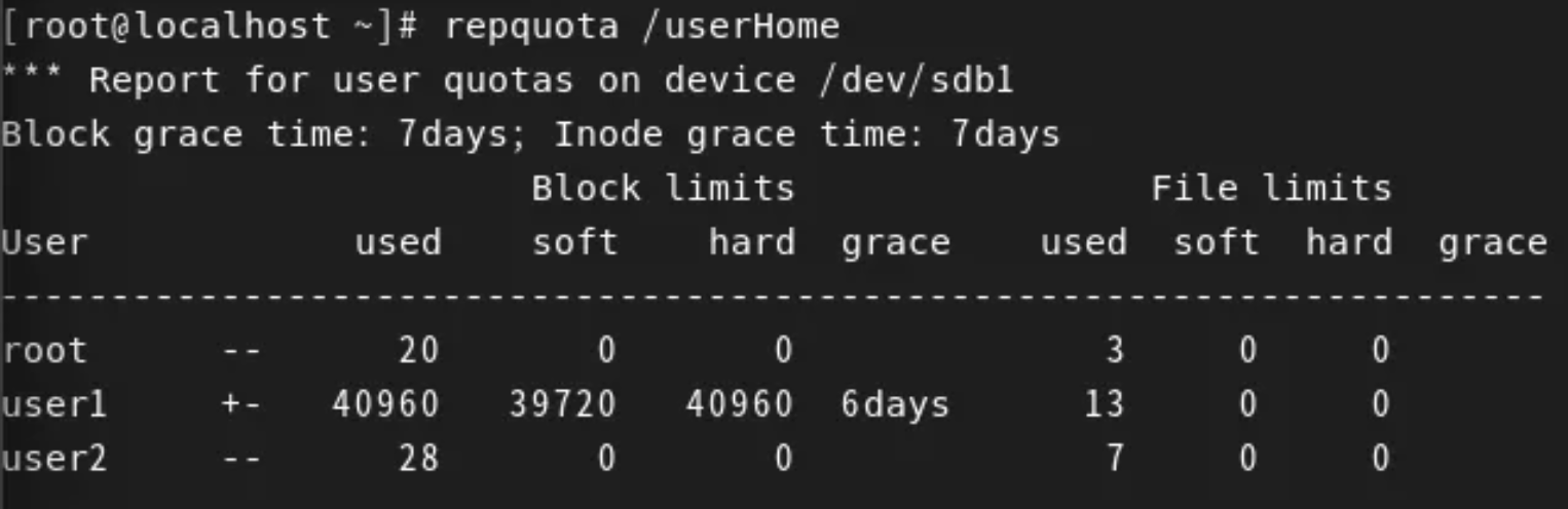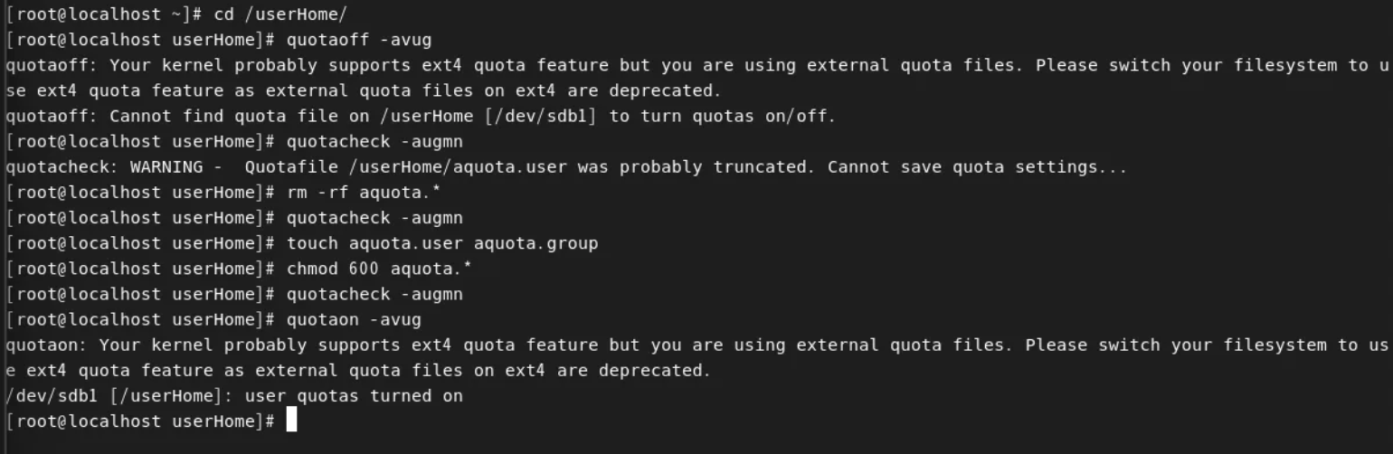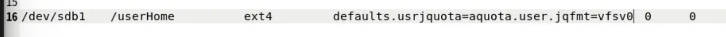 /dev/sdb1 /userHome defaults,usrjquota=aquota.user,jqfmt=vfsv0 0 0