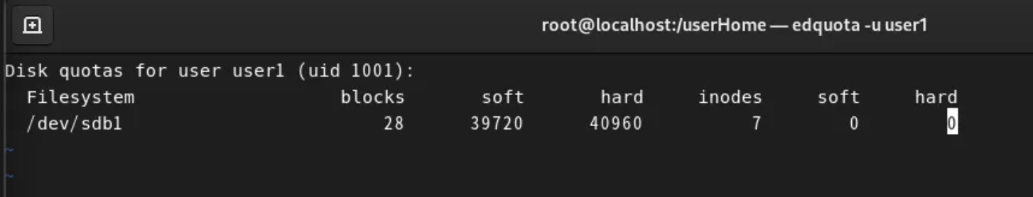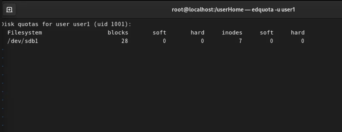 edquota -u user1