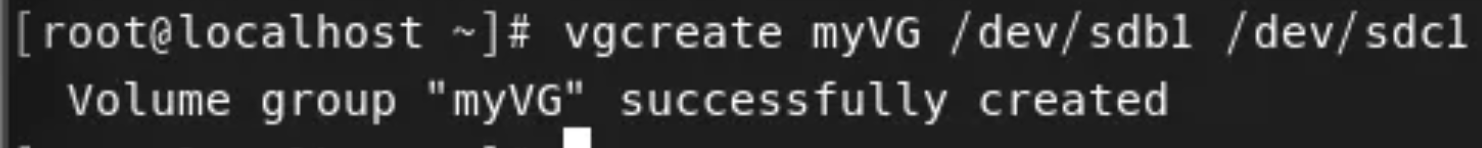vgcreate myVG /dev/sdb1 /dev/sdc1