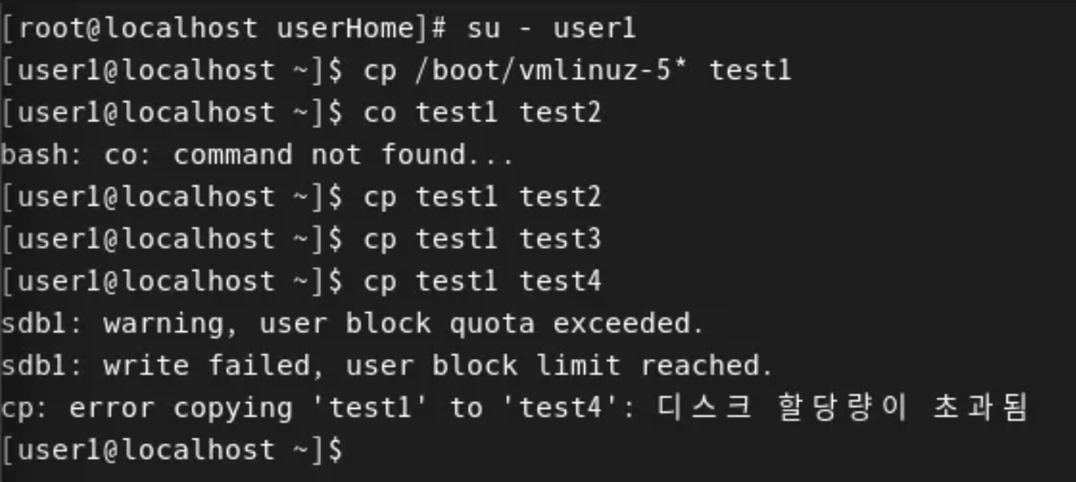 쿼터(사용자 용량 할당) 연습하기