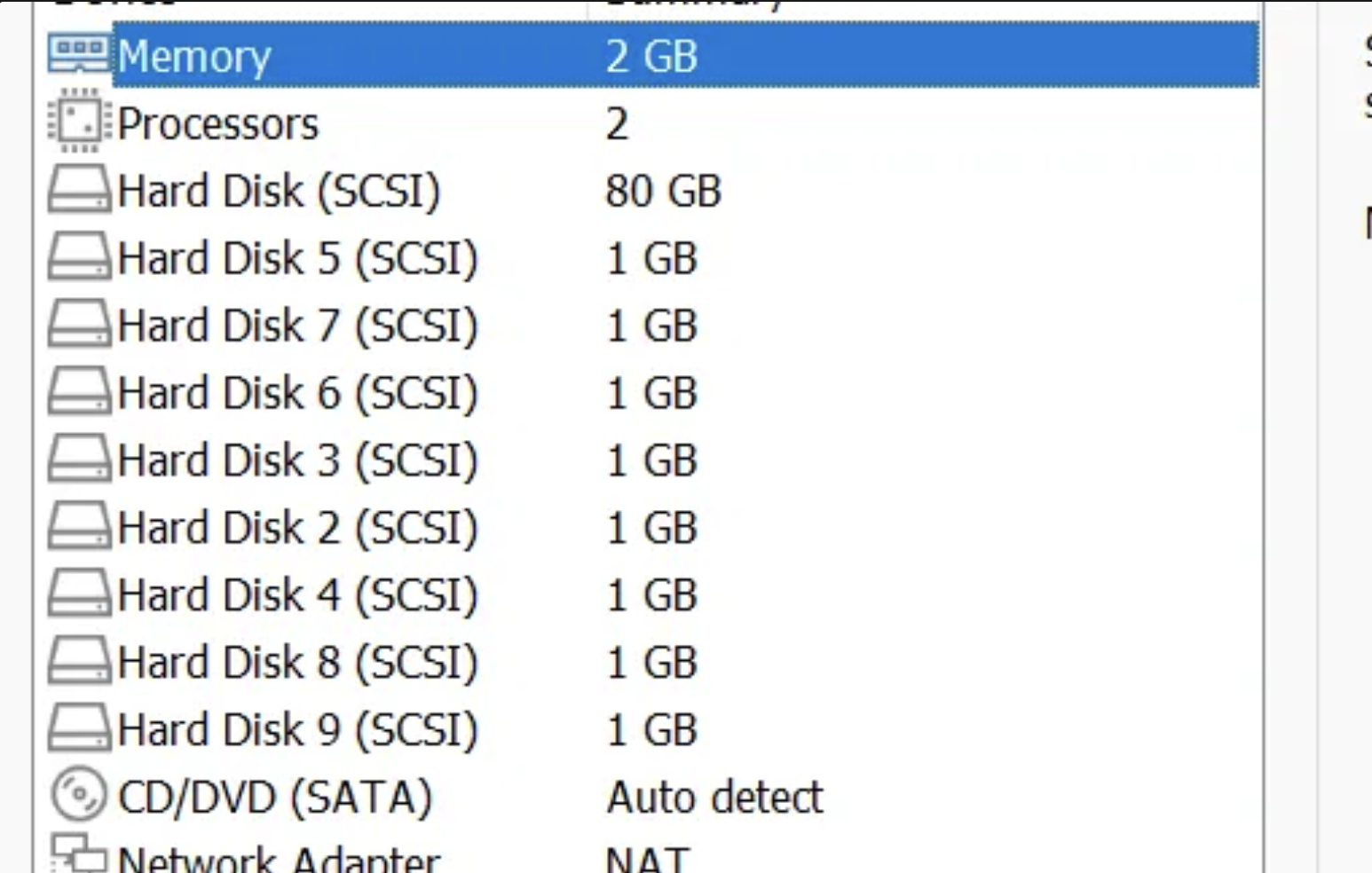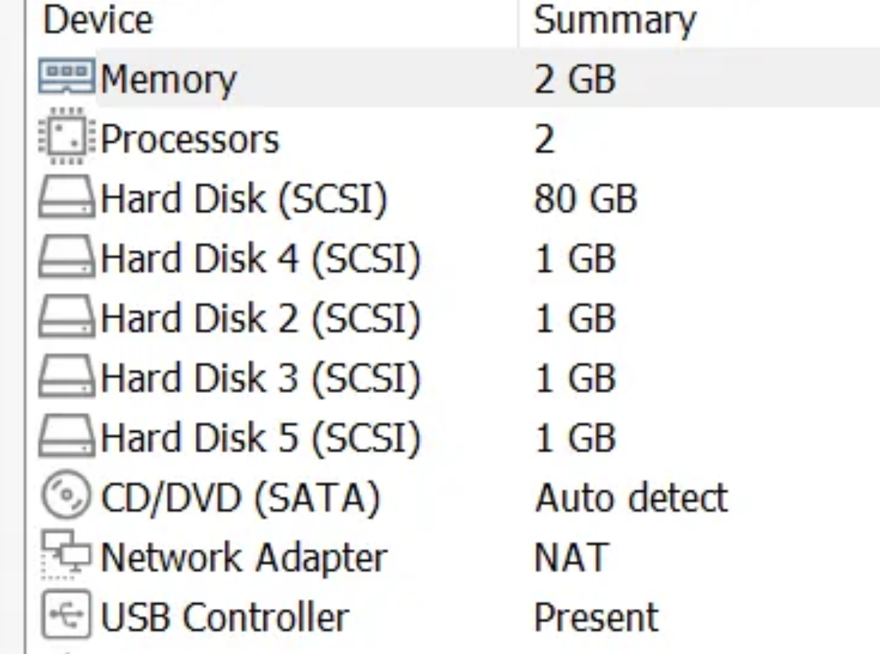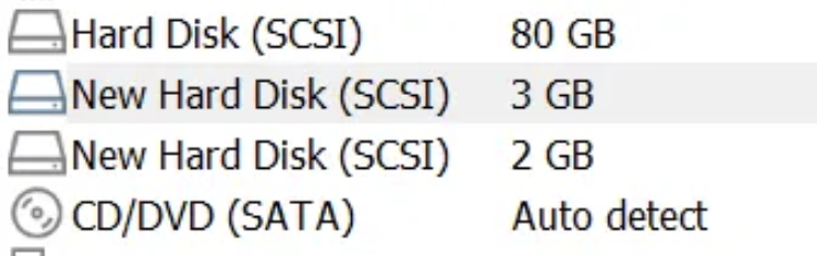 Server를 초기상태로 돌린 후, 2gb와 3gb 하드디스크를 하나씩 추가합니다.