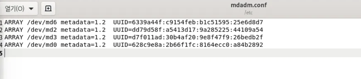 mdadm.conf 파일에 붙여넣기합니다.