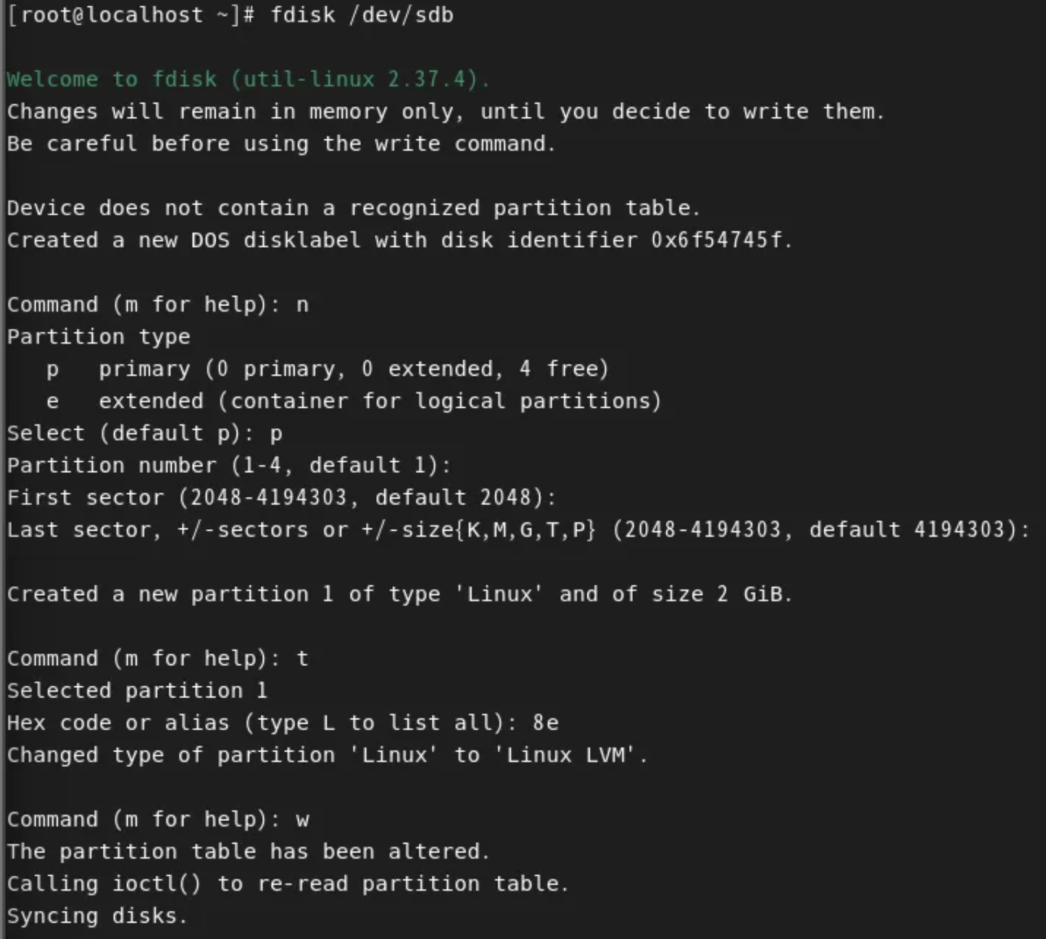 fdisk /dev/sdb