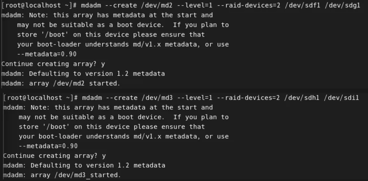 mdadm --create /dev/md3 --level=1 --raid-devices=2 /dev/sdh1 /dev/sdi1