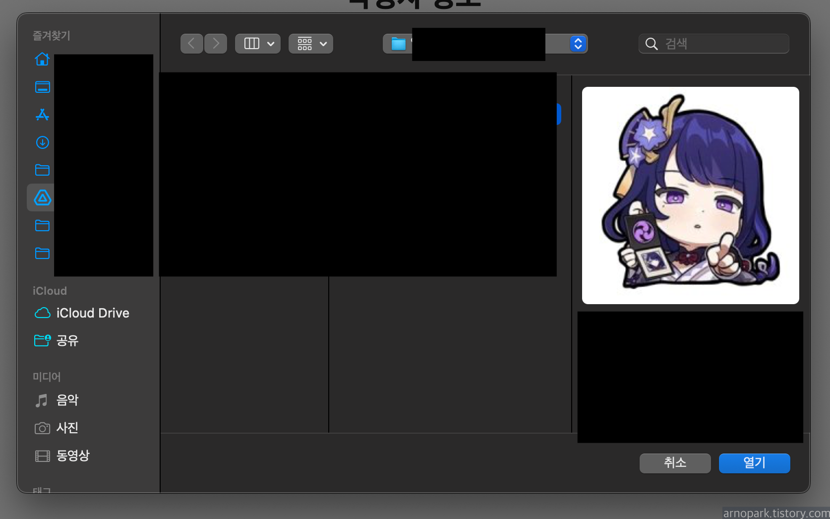이미지를 업로드할 수 있는 파일 선택기가 켜집니다.
