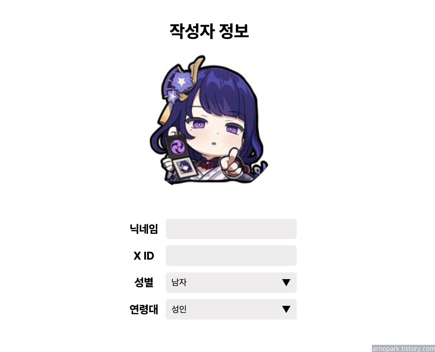 | [원신 X친소표 사이트 제작기] 1. 제작한 이유와 반응 살펴보기 (1) | 2024.11.27 |